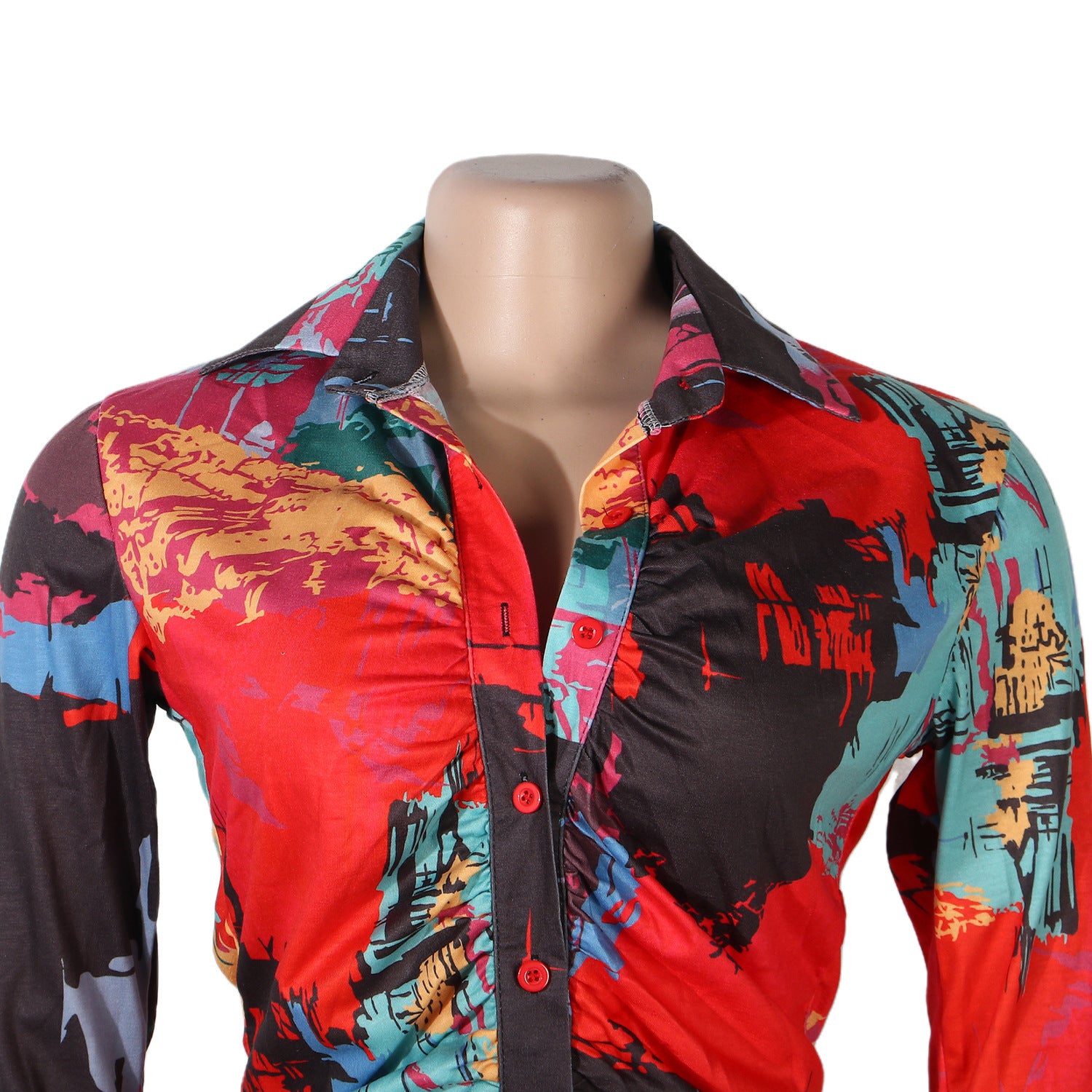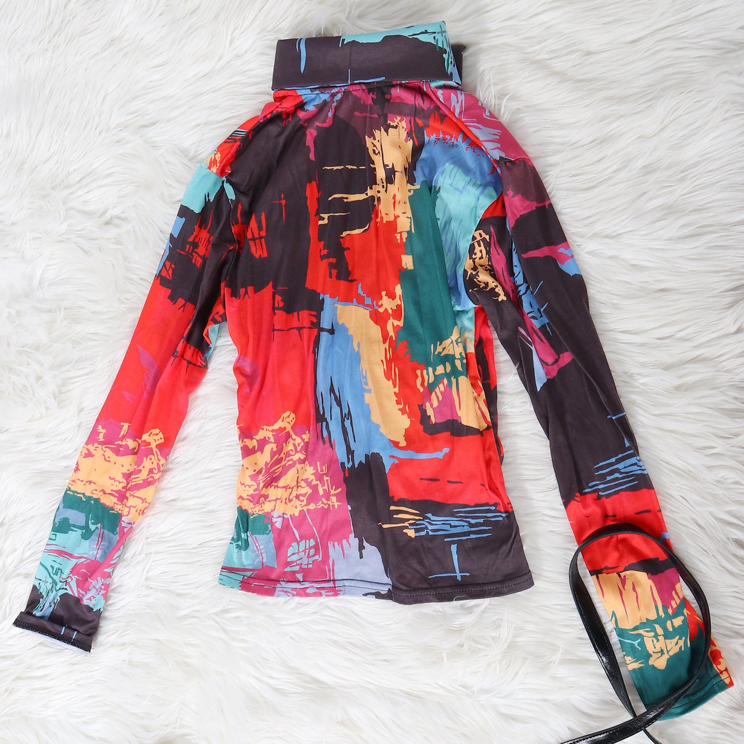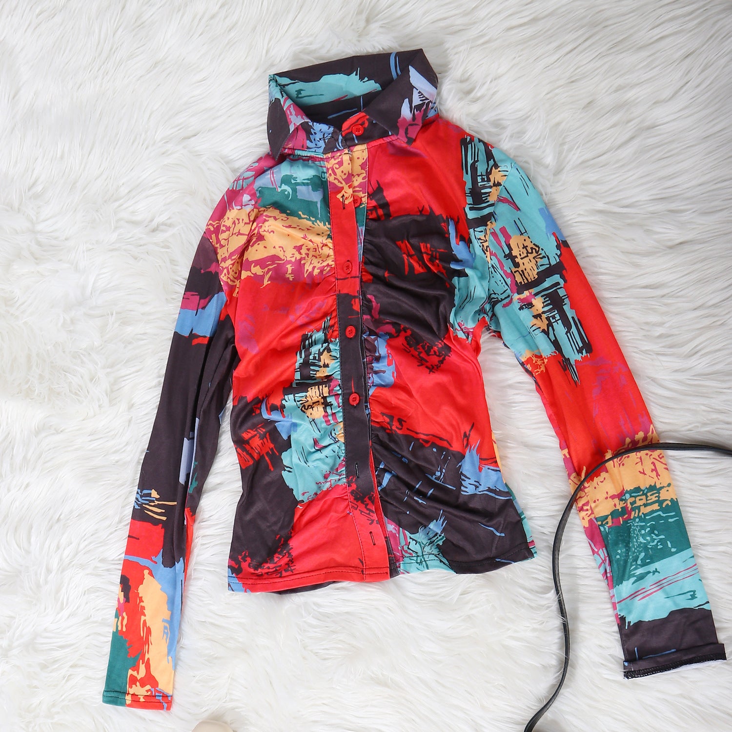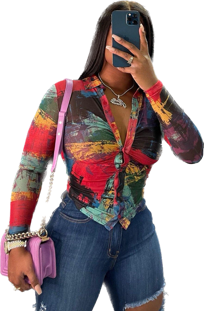 Our cotton blend top features a stylish, long-sleeved design in a variety of colors. Its cleavage-enhancing cut adds a touch of sophistication to any outfit.