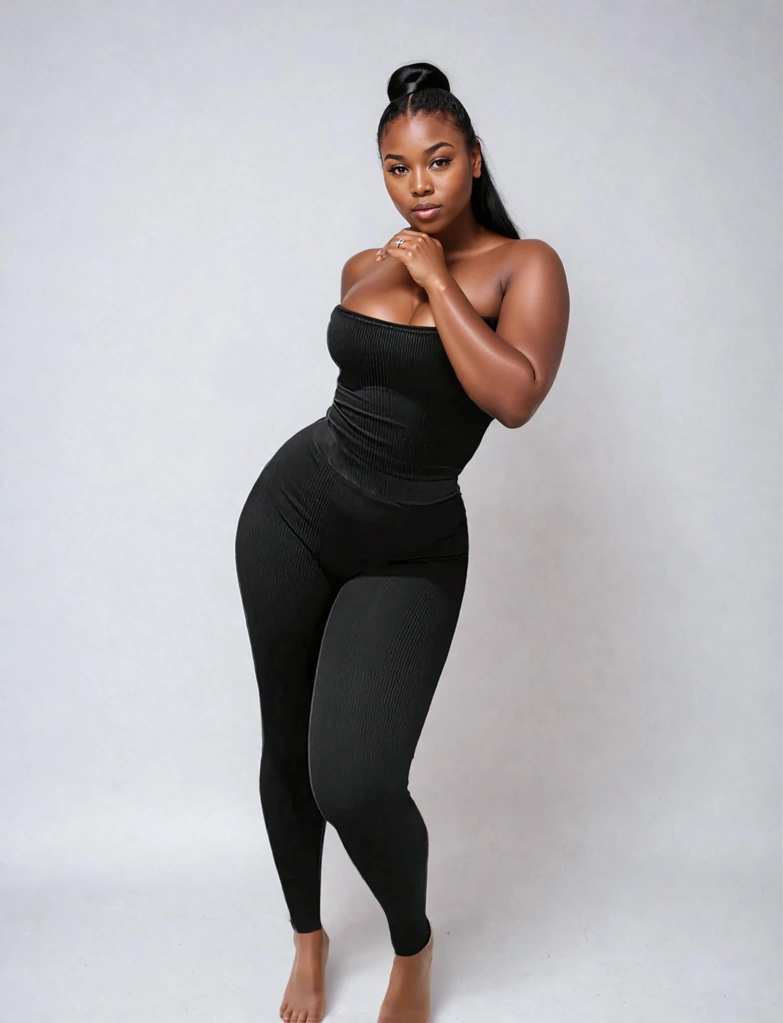 This ribbed two piece set is perfectly suited for creating a coke bottle illusion. It is a versatile option for any wardrobe, offering an everyday look with its simple yet stylish design.